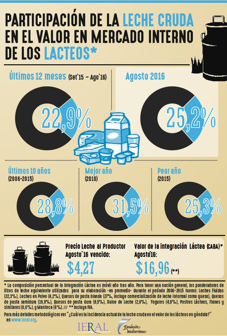 Infografias / Participación de la leche cruda en el valor en mercado interno de los lácteos - Agosto 2016